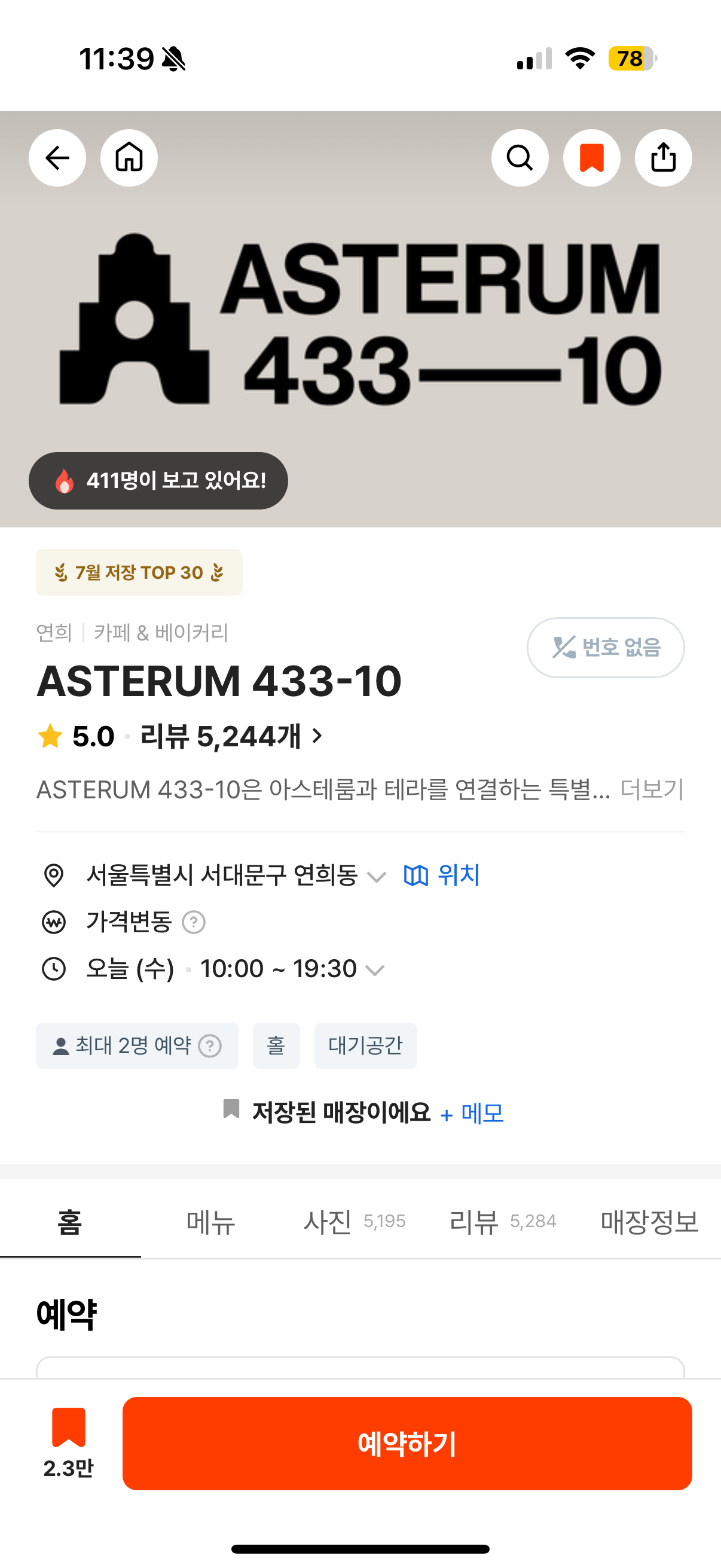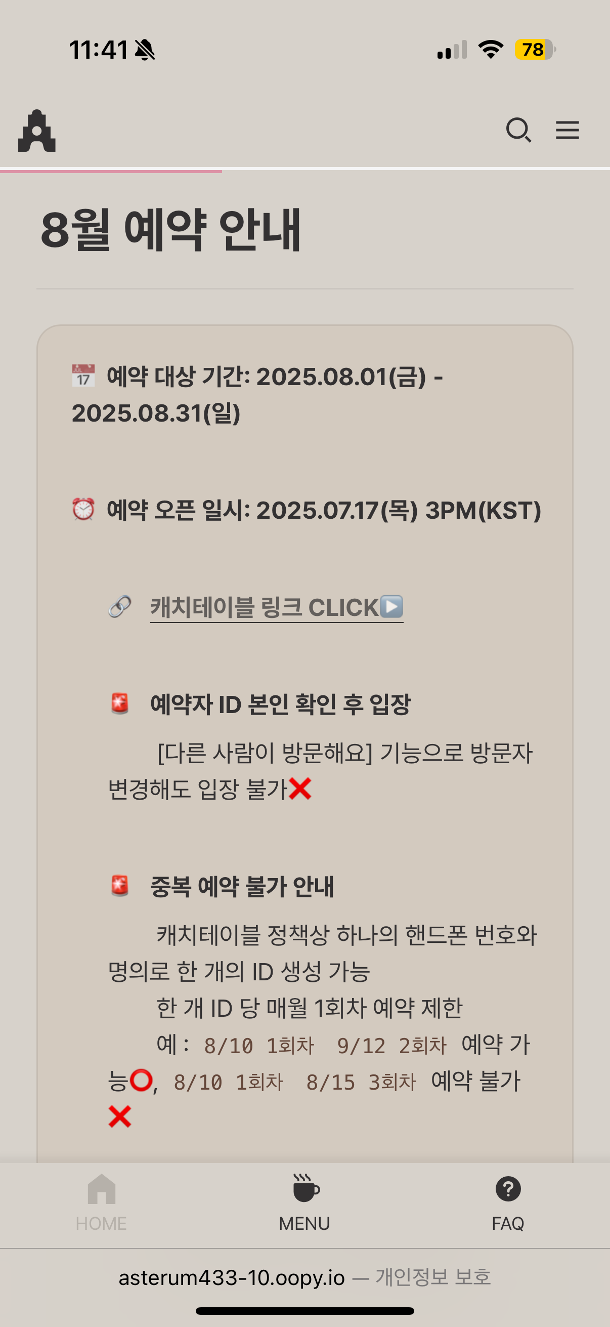 밤비 생일 달에 십카페 가려고 예약 페이지 들어갔다가