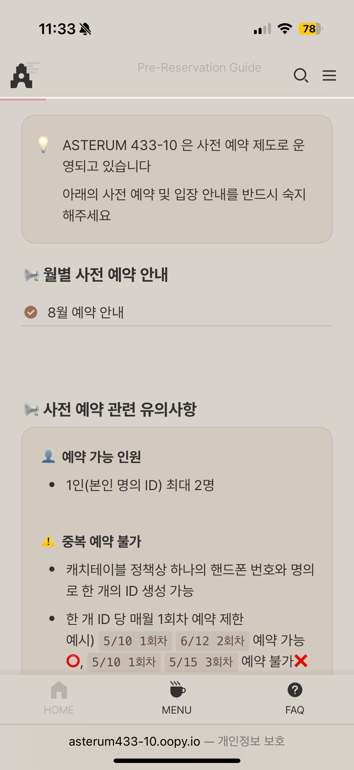 클릭하면 카페 안내 페이지로 넘어가는데요!