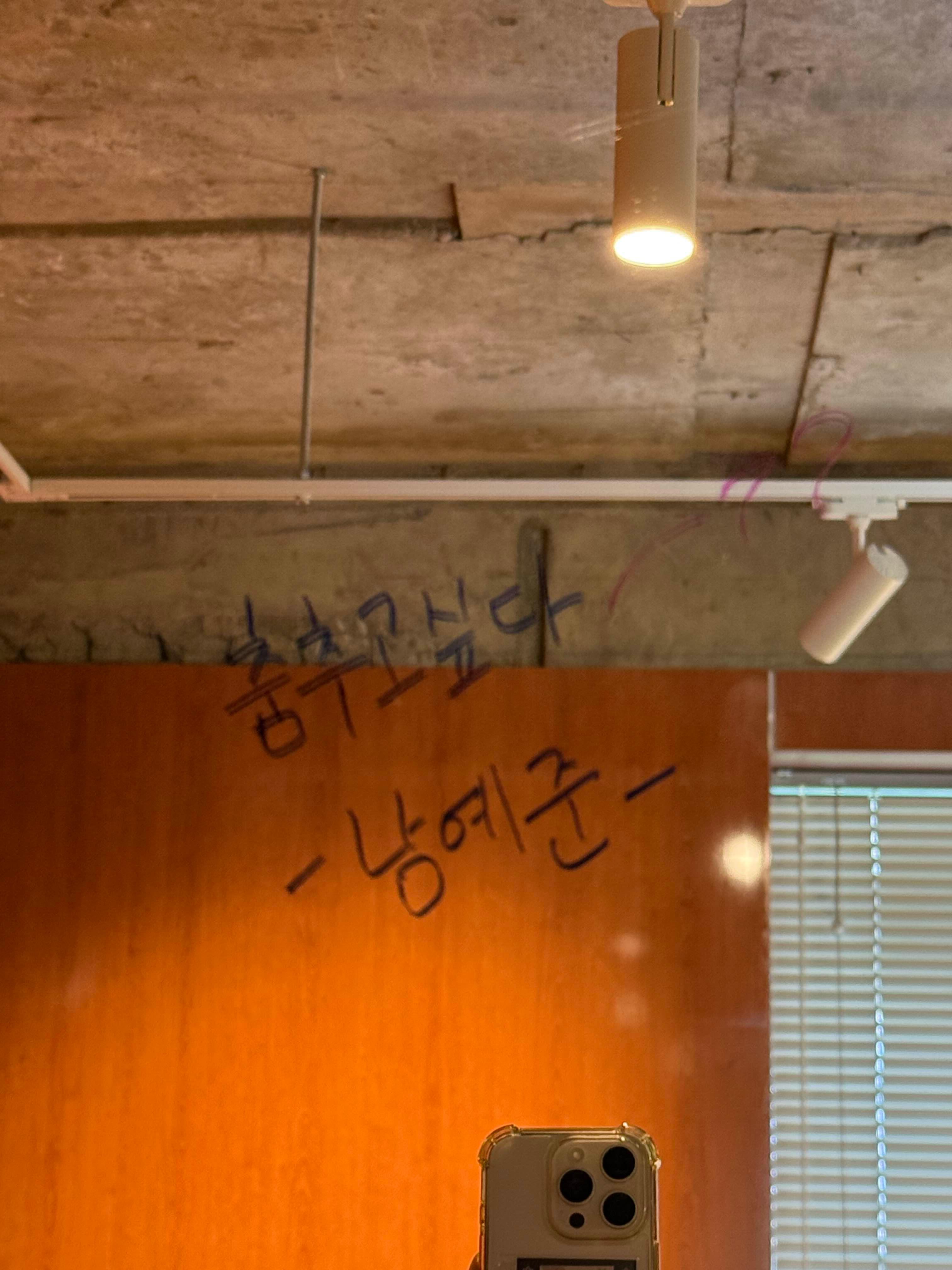 벽에 적힌거 안 보여서 카메라로 확대해서 봤어요🤣